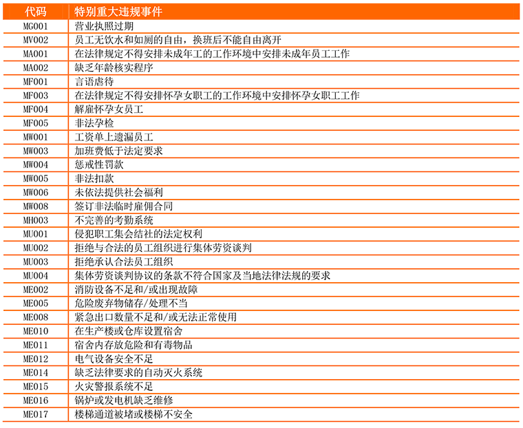 這些問題可能是違法的,也可能是因為職工的健康和福祉被忽視而引起的。這些違規事件給供應商的商業經營帶來威脅。